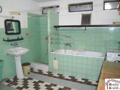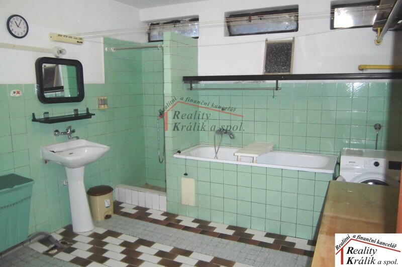 prádelna (s vanou a sprchovým koutem), sklep, komora pod schody. Na zahradě