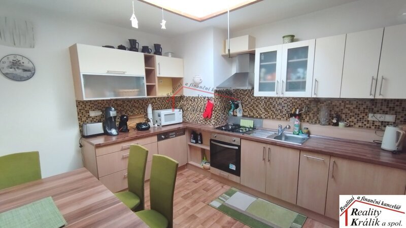 Topení je ústřední plynové. Nedaleko od domu je základní škola, školka,