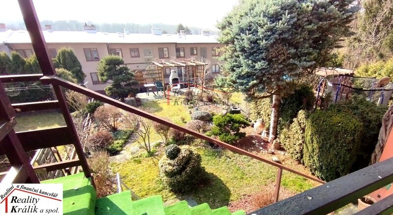 balkonem, terasou a zahradou v zástavbě rodinných domků.