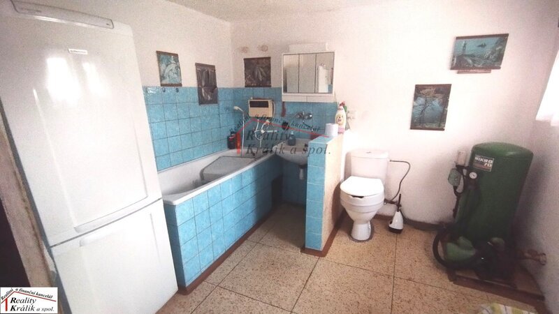 s vanou. Do domu je zavedena elektřina a voda z vlastní studny, splašky
